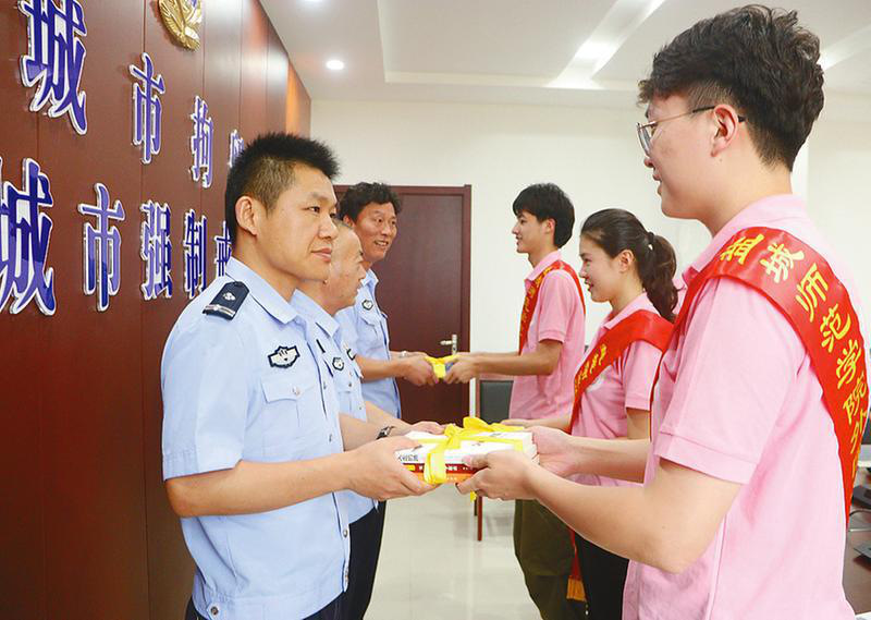 盐城晚报讯 7月9日下午,开云网页版页面“守护花季青不‘毒’行”志愿服务团队的大学生们,走进市强制戒毒所,为戒毒人员赠送书籍,以激励戒毒人员早日戒毒,回归社会。