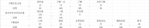 实践调研显示,半数人对红色文化有所了解,但仍有少数人不知道红色文化。作为华夏子民,大家都对中共历史感到骄傲。从数据来看,群众了解红色文化的途径主要为上网、课堂和媒体宣传。