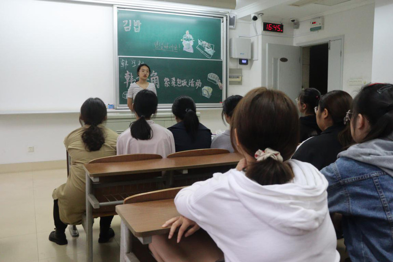 浪花译社邀请外籍教师Alicia参加活动,以“新学期,新目标”为主题展开小组讨论;韩学社以特色美食紫菜包饭制作的体验教学,让同学们充分地感受韩国饮食文化的魅力;香榭丽舍社团向大家介绍了法国浪漫瑰丽的地理风景和人文风光,体味中法文化的异同;E时代社团组织同学们欣赏俄罗斯经典电影《他是龙》,同学们在享受视听盛宴的同时也感受到了俄语的魅力。社团学长学姐分享外语学习经验,2020级新生积极发言,既锻练了学生的语言表达能力,又绽放了自己的性格色彩。