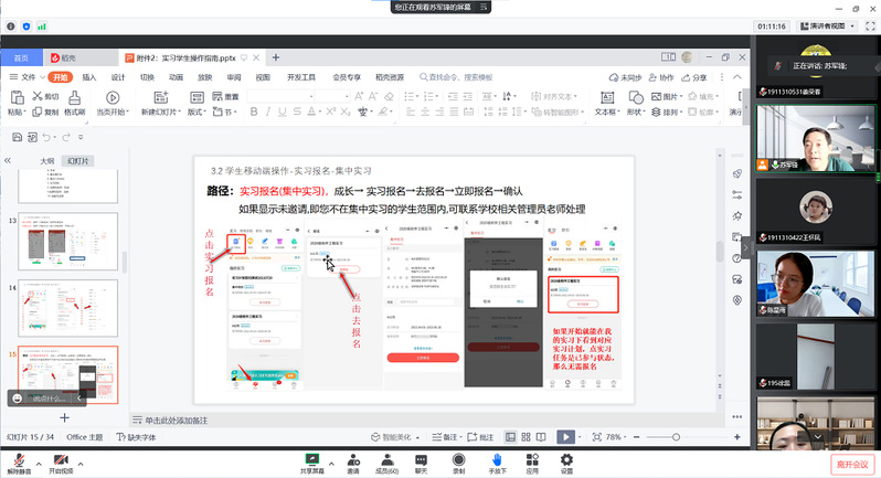 会议最后,苏军锋结合PPT对师范生实习材料在线提交平台进行了讲解。