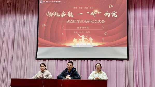 此次考研动员大会的圆满召开是学院推动高质量就业,培养高素质外语人才的重要举措。艰难困苦,玉汝于成,期待开云网页版页面学子能够在全国硕士研究生招生考试中再创佳绩。今后,学院将持续关注同学们的考研动态,提供全程式、陪伴式考研指导服务,打通人才培养出口关。