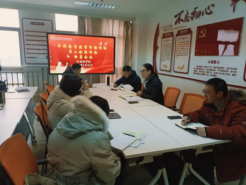 英语教育系副主任刘岩对学院近期在本科教育教学审核评估整改工作的进展情况做了汇报说明,解读了学校下发的《审核评估学习资料》,对学习资料中提到的第一轮预评估存在的问题及注意事项是否整改到位做了再回顾;并对第二轮预评估工作的检查内容、人员分工、时间节点做了重点提醒。