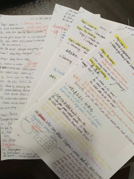 “Practice makes perfect.”在分享中,杜依蔚学姐提到,教师编制考试主要是结构化和无生试讲。结构化考的是语言组织能力和反应能力。无生试讲就是要自己写教案和逐字稿,对着小黑板反复练反复讲。要自己想象自己的面前坐着许多的学生。最重要的是自己的表现力,要有抑扬顿挫的语言,以及交流感。要让学生觉得你这堂课是有意思的,是可以通过一节课,轻轻松松就可以掌握本节课的重点。所以导入部分(lead-in)是非常重要的,要抓住学生和老师的眼球。