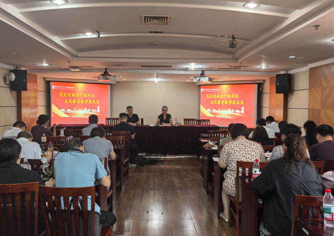 活动中,学院党委书记张宾州领学了习近平总书记关于教育的重要论述精神,传达学习了学校党委四届七次全会工作报告《锚定目标奋发有为以创新实干作风开创学校高质量发展新局面》并围绕学院工作实际进行了细致解读。