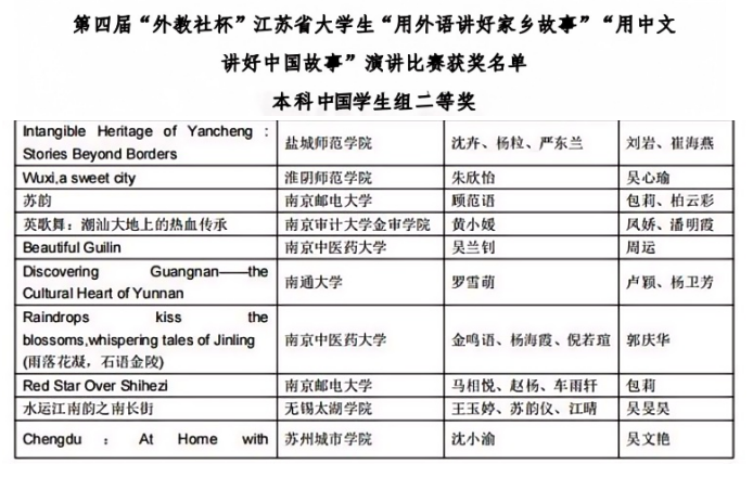 近日,第四届“外教社杯”江苏省大学生“用外语讲好家乡故事”演讲比赛(即第八届“外教社杯”全国高校学生跨文化能力大赛短视频省赛选拔赛)在盐城幼儿高等专科学校落下帷幕。我校参赛选手沈卉(开云online(中国))、杨粒(文学院)、严东兰(文学院)凭借出色的语言表达能力、深入的文化理解与独特的叙事视角,斩获二等奖1项。