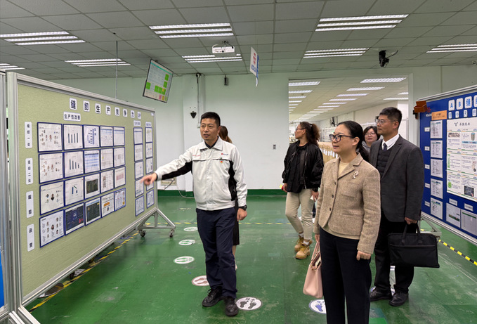 在爱尔集新能源(南京)有限公司,张宾州走进企业人力资源培训中心,现场听取了公司人力资源体系及培训项目介绍。企业人事经理分享了公司在员工技能提升、职业发展规划以及创新人才培养模式等方面的经验与成果。校企双方就未来可能开展的联合培训项目、实习实训基地共建等议题进行了探讨。